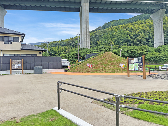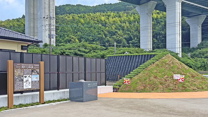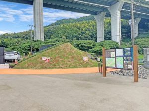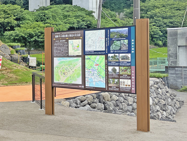 古墳の横穴式石室や副葬品などの発掘調査が書かれた解説サインなど、園内に多くの解説サインを納品しました。 解説サインの中には、古墳の一つは茶畑の石垣に隠れていたり、富士山信仰の祠として再利用されていたりという事が知ることができます。