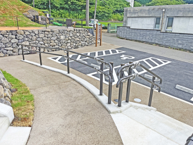 また園内は身障者用駐車場があり、駐車場からスロープでアクセスすることができ、手すりがあることで高齢者や足腰が弱っている方でも安心して訪れることができます。