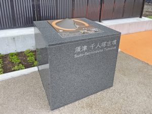 総合案内板は、千人塚古墳の園内の案内と周辺にある文化財を示しています。須津川(すどがわ)流域には総数200基を超える須津古墳群が広がっており、千人塚古墳は東岸の古墳の中心的な存在と考えられます。愛鷹山南麓に広がる東海最大級の古墳群の中でも、特に有力な古墳が集中して築かれた須津古墳群をはじめ、さまざまな時代の文化財をめぐりながら、地域の歴史と文化を感じることができます。